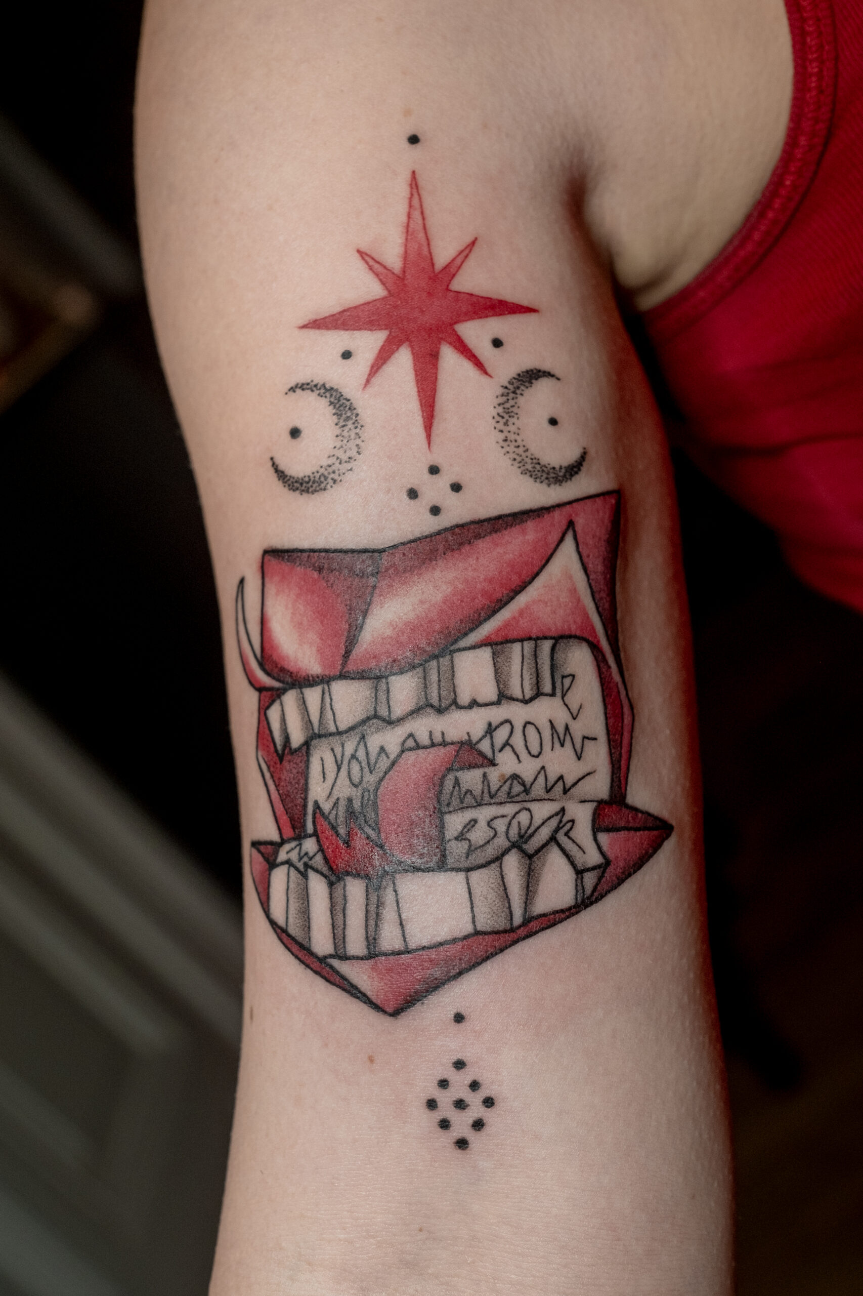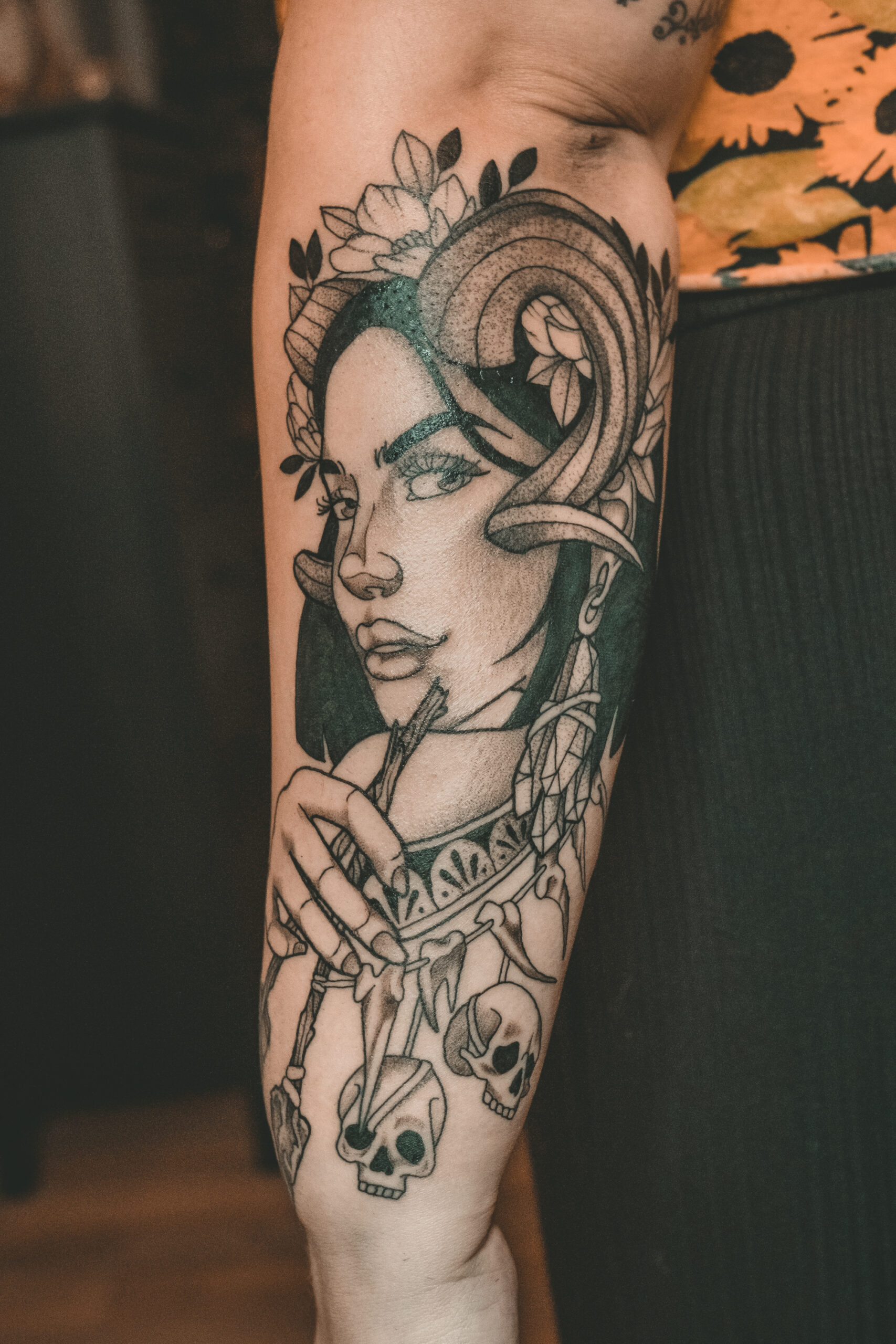 Seit ich 2014 das erste Mal meine Nadel an Menschen ansetzen durfte, habe ich mich entwickelt, dazu gelernt und meine Berufung fürs Leben gefunden. Nichts ist schöner, als mit euch zusammen in allen Ecken des Gehirns nach Ideen zu graben und immer wieder individuelle Motive von und für euch zu erschaffen.
